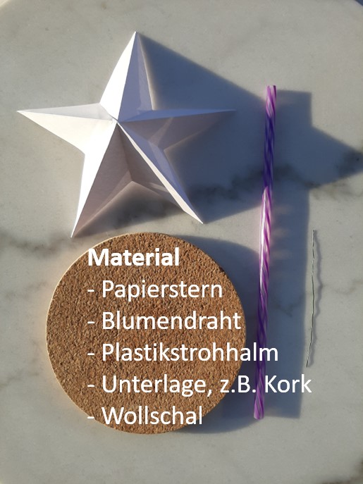 Wie man einen schönen Stern faltet kann man auf YouTube sehen, ebenso einen Clip zur Geschichte und zur Physik Reibungselektrizität.