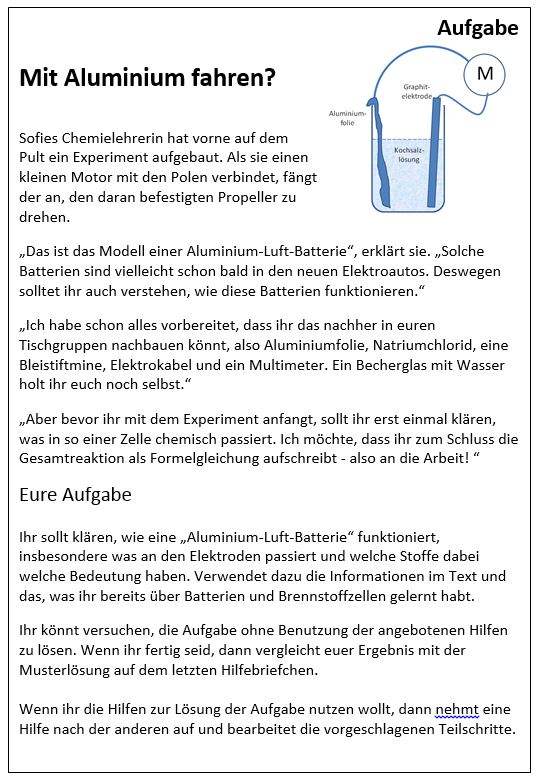 Aufgaben mit gestuften Hilfen - Varianten des Fokus zur "Aluminium-Luft-Batterie" (II)